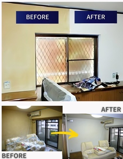 この作業は空室および、在住中でも作業が可能です。料金もかわりません。壁面に家具やインテリア雑貨などがある場合は作業がてきませんので、一時的に撤去お願いします。